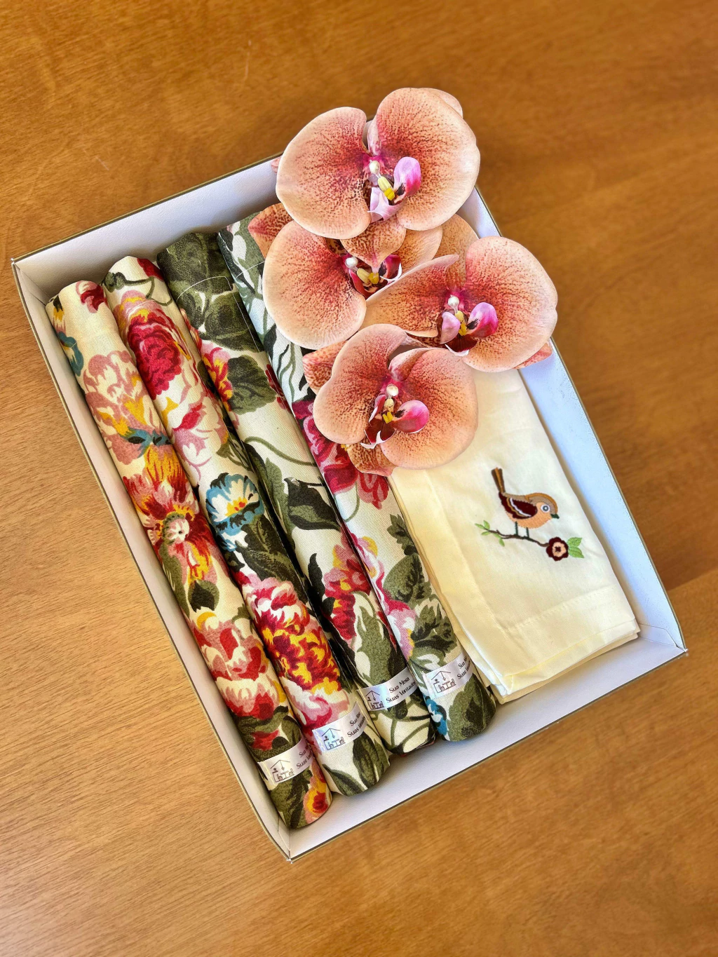 Guardanapo: Tecido linho com algodão, com bordado localizado Passaro