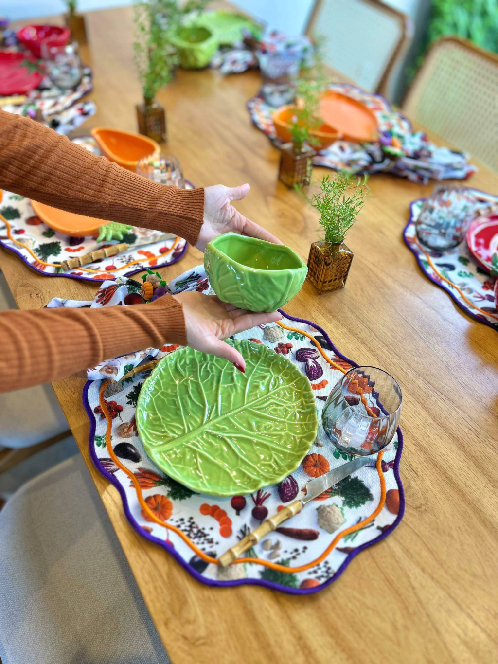 Bowl de cerâmica redondo em formato de REPOLHO VERDE