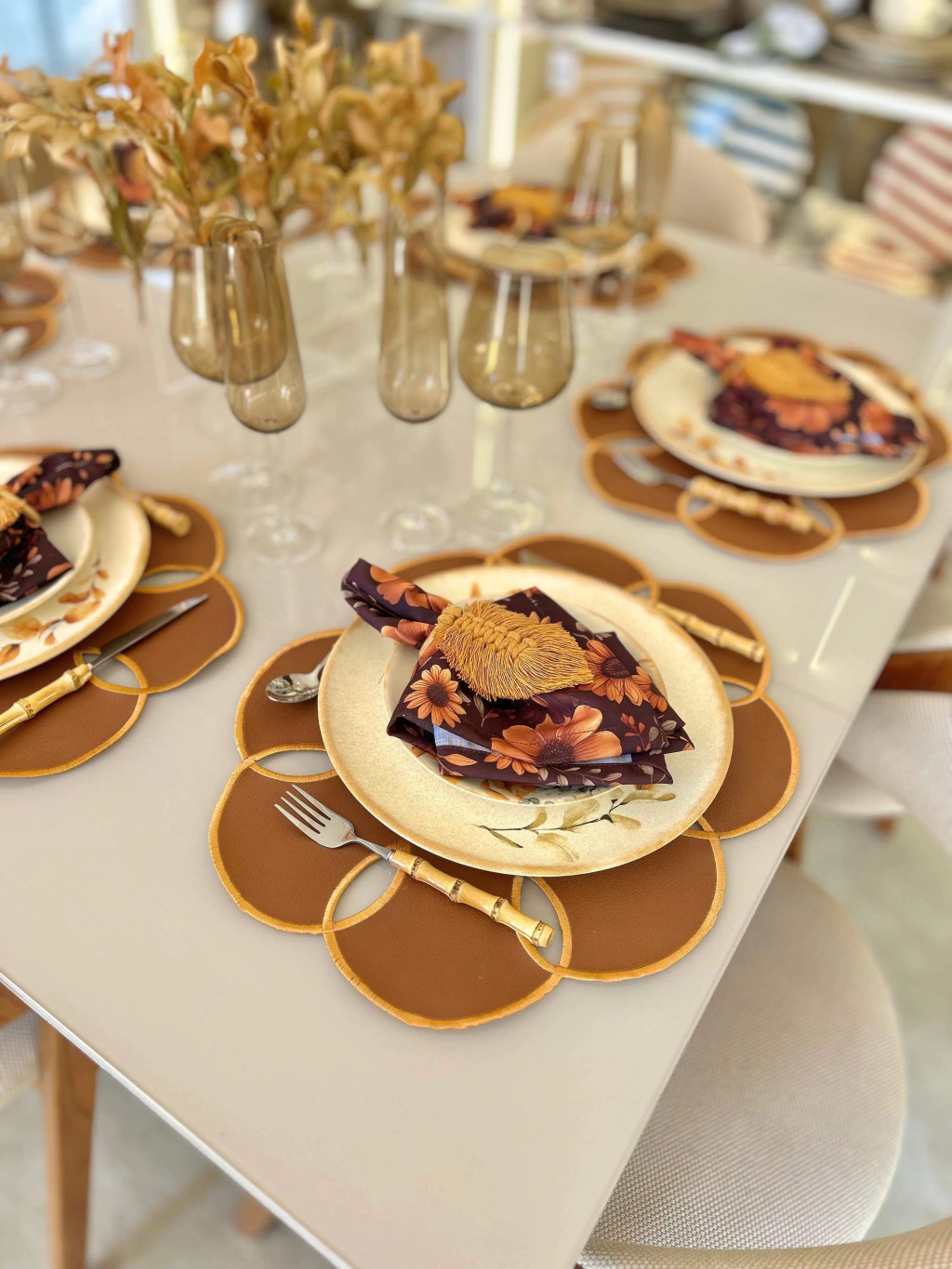 12 lugares americanos + 12 guardanapos + 12 porta guardanapos + presente