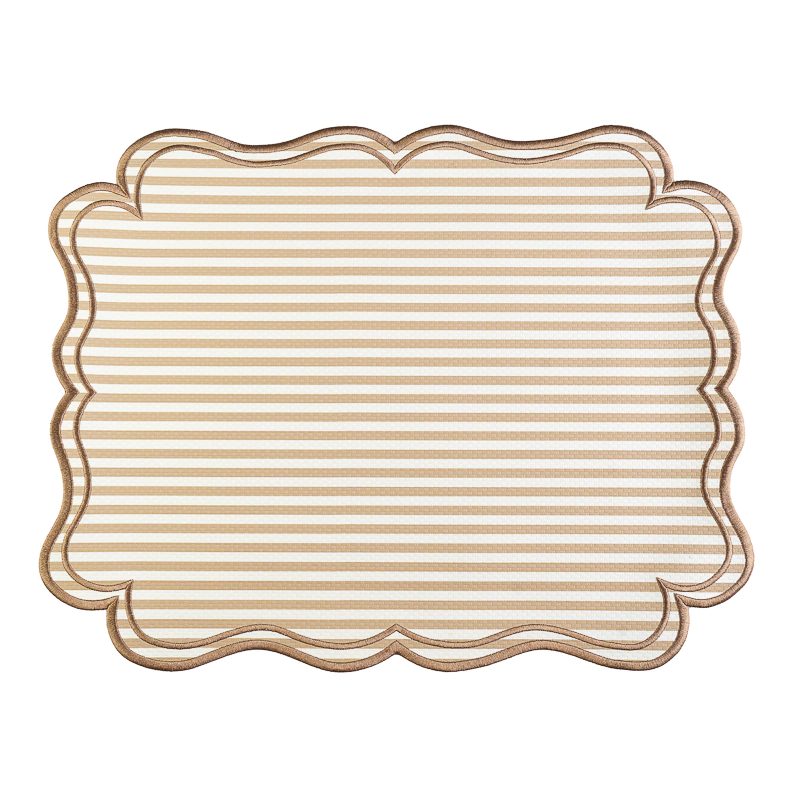 Lugar americano: Tecido Corino texturizado listrado, com bordado em torno da peça.