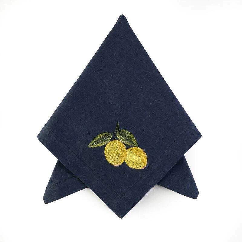Guardanapo na cor azul em tecido linho misto com bordado localizado.
