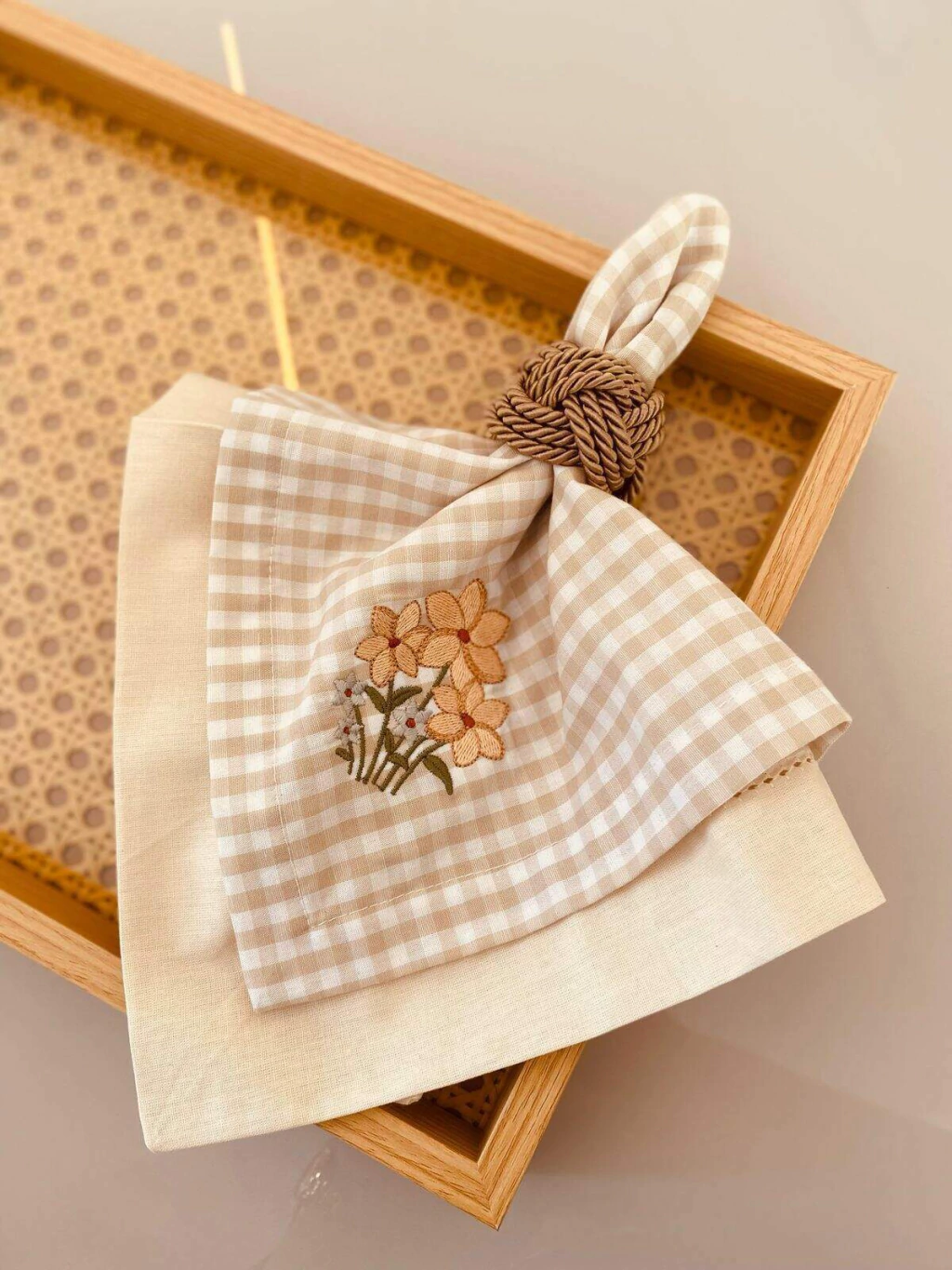 Eleve a apresentação da sua mesa com o Guardanapo Xadrez Bordado Margarida. Produzido em 100% algodão de alta qualidade, este guardanapo une o charme clássico do xadrez bege ao delicado bordado de margarida, proporcionando um toque de sofisticação e frescor às suas refeições.