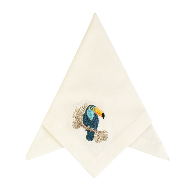 Guardanapo na cor off em tecido linho misto com bordado localizado.