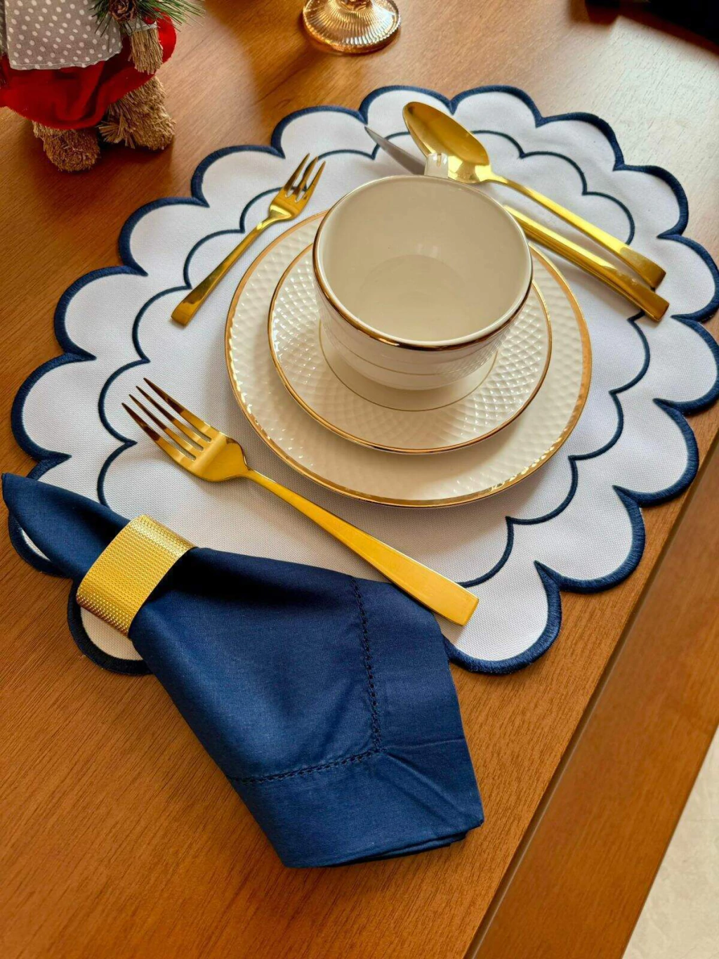 Confeccionado em tecido 100% algodão, este guardanapo oferece suavidade ao toque, alta durabilidade e acabamento refinado em ponto ajour. Ideal para jantares especiais, recepções e ocasiões em que cada detalhe faz a diferença.