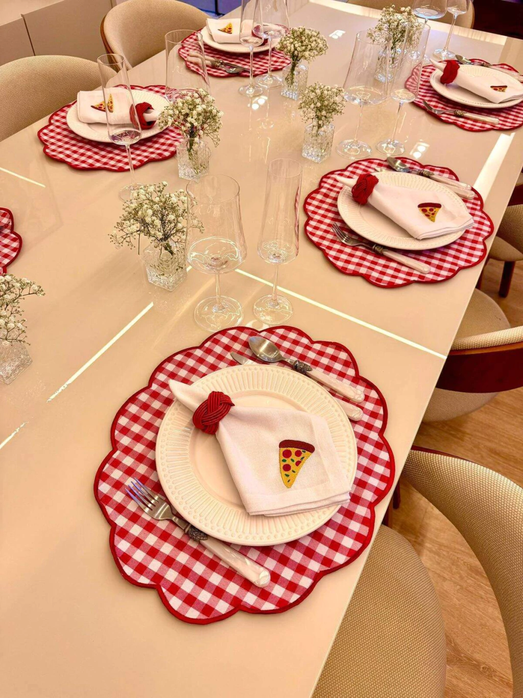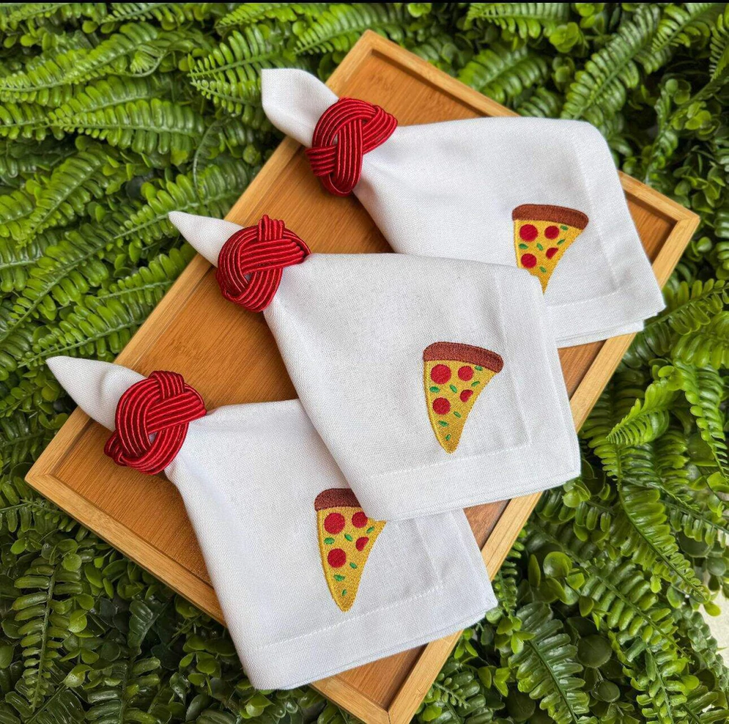 Guardanapo na cor branco em tecido percal 100% algodão bordado localizado.