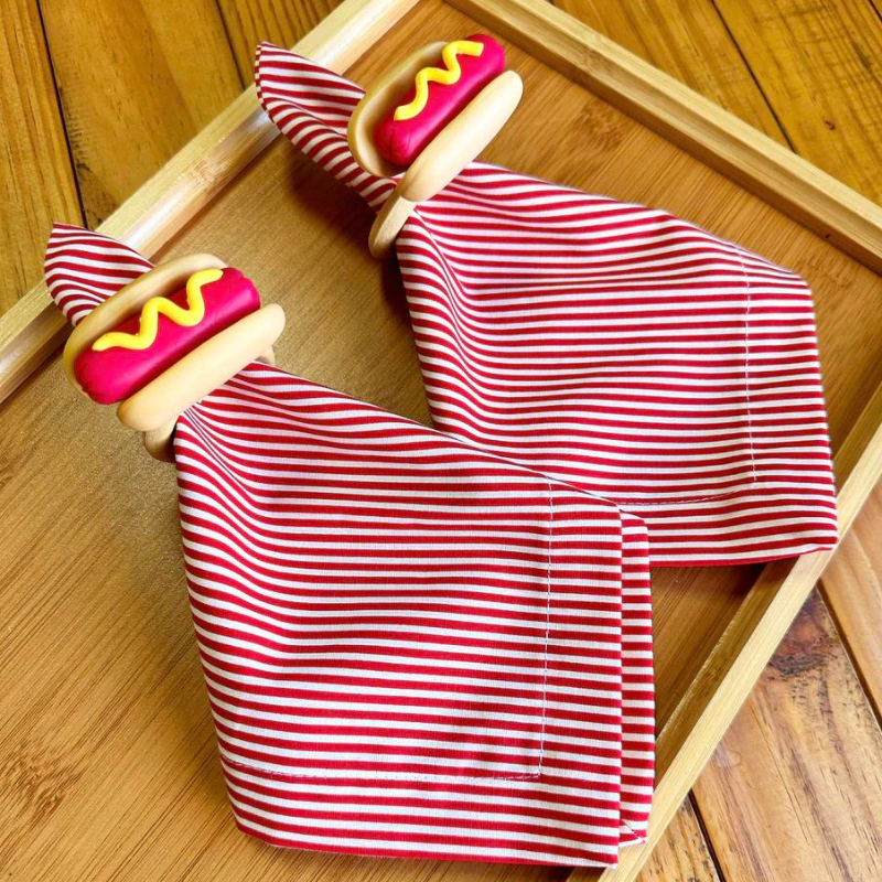 Guardanapo listrado na cor vermelho em tecido tricoline 100% algodão.