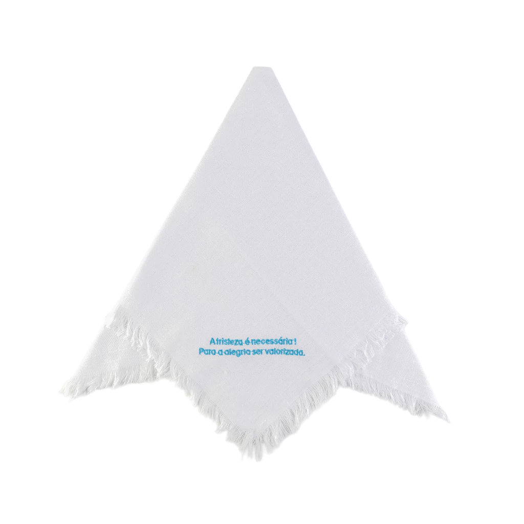 Delicado e divertido, este guardanapo de linho branco com acabamento em franjinha traz um toque único para a sua mesa. O bordado com a frase “A tristeza é necessária para a alegria ser valorizada” inspirado na personagem Tristeza, do filme Divertidamente, tornam a peça descontraída e cheia de personalidade.