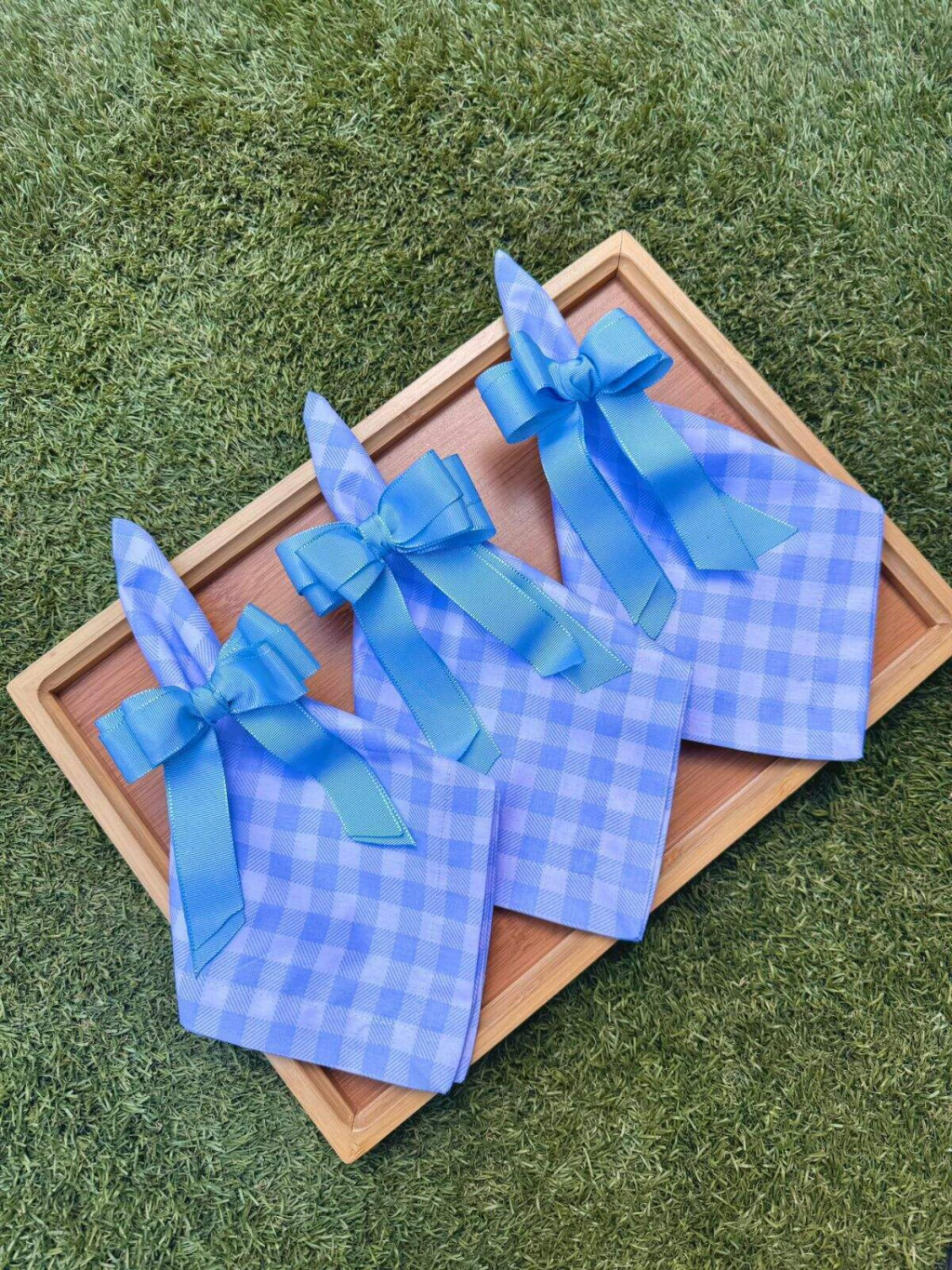 Guardanapo na cor quadriculado azul em tecido tricoline.