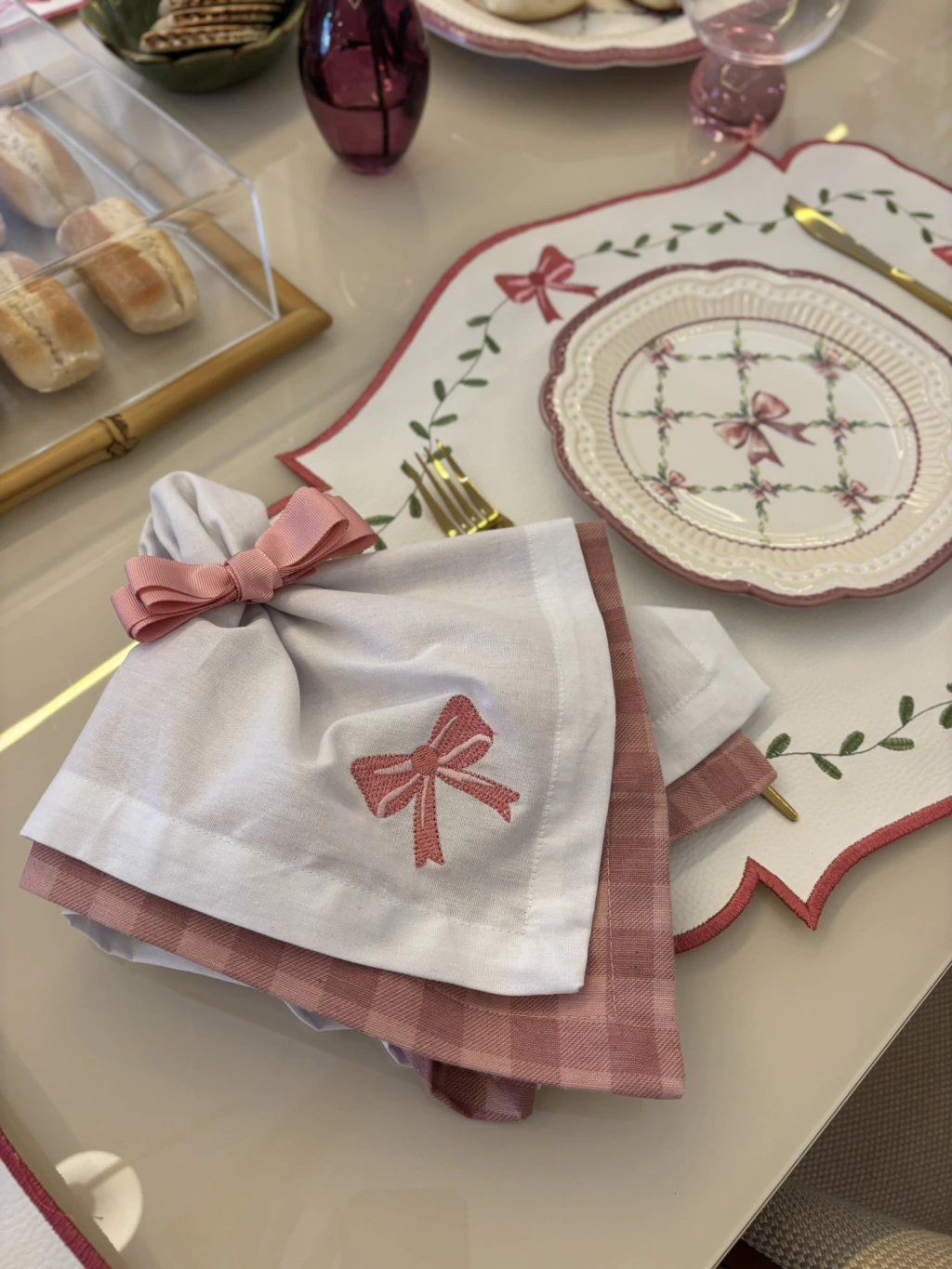 Delicadeza e charme à mesa! O guardanapo com bordado de laço traz um toque romântico e sofisticado para suas refeições. Confeccionado em tecido de alta qualidade, resultando em uma composição elegante e acolhedora. O bordado de laço adiciona um detalhe especial, perfeito para composições femininas e cheias de carinho. Ideal para mesas postas em ocasiões especiais ou para o dia a dia com estilo.
