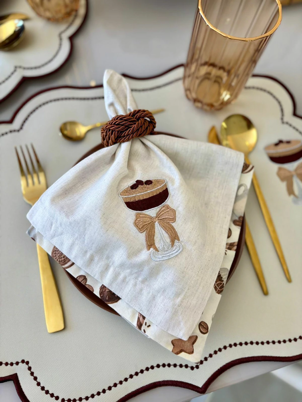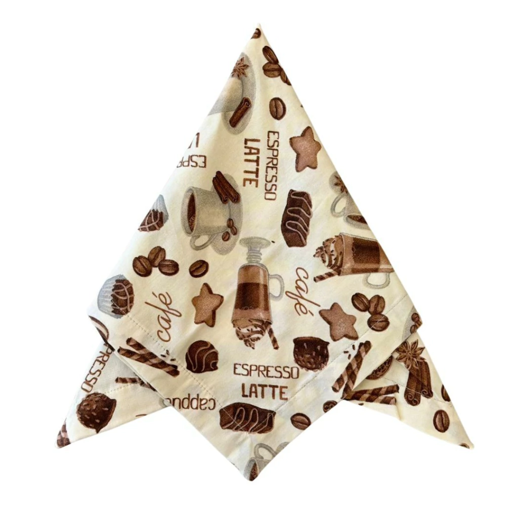 Com um design divertido e acolhedor, o guardanapo estampado café é perfeito para deixar sua mesa posta ainda mais charmosa. A estampa traz grãos, xícaras e delícias do universo do café em tons neutros e aconchegantes, que combinam facilmente com diferentes composições. Ideal para o dia a dia ou para ocasiões especiais, esse guardanapo une praticidade e estilo, trazendo um toque temático cheio de personalidade.