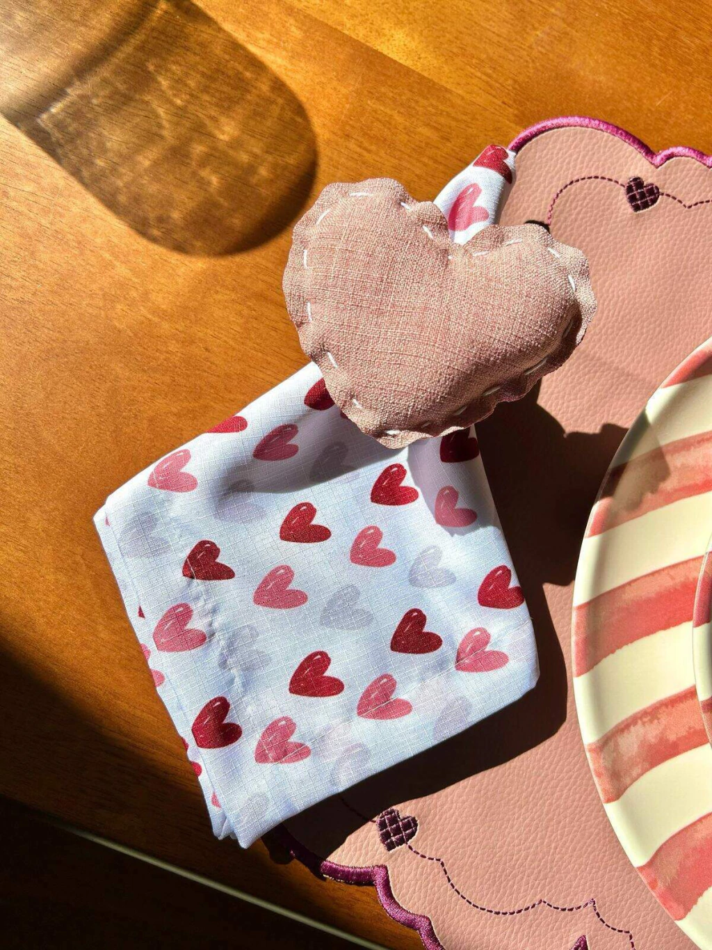 Guardanapo na cor branca com estampa de corações exclusiva.