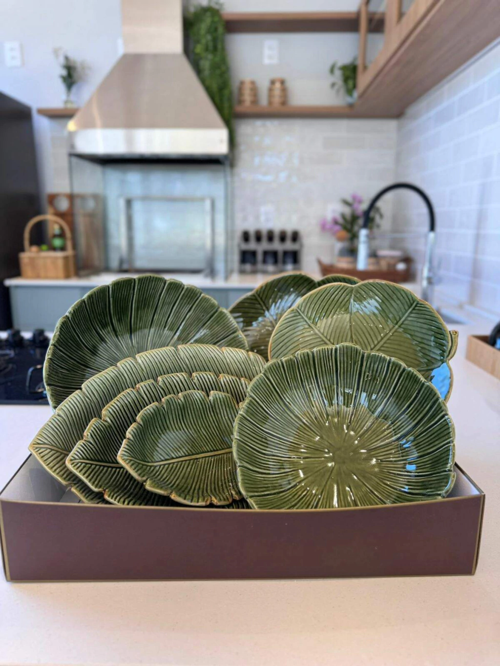 O Kit Folhagem foi pensado para quem ama servir com charme e autenticidade. Produzido em cerâmica de alta qualidade, cada peça traz o formato e as nuances das folhas, criando uma composição leve, sofisticada e cheia de personalidade.