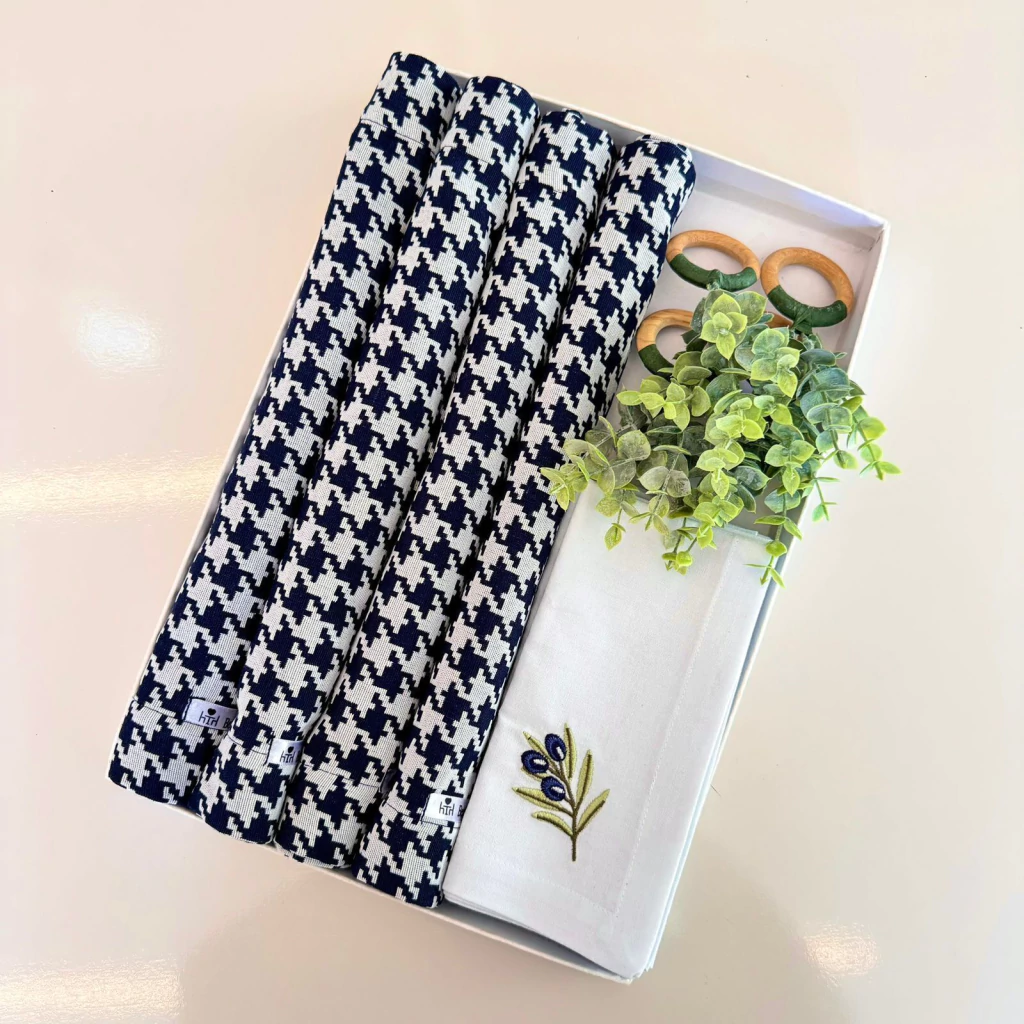 (Americano + guardanapo bordado + porta guardanapo)