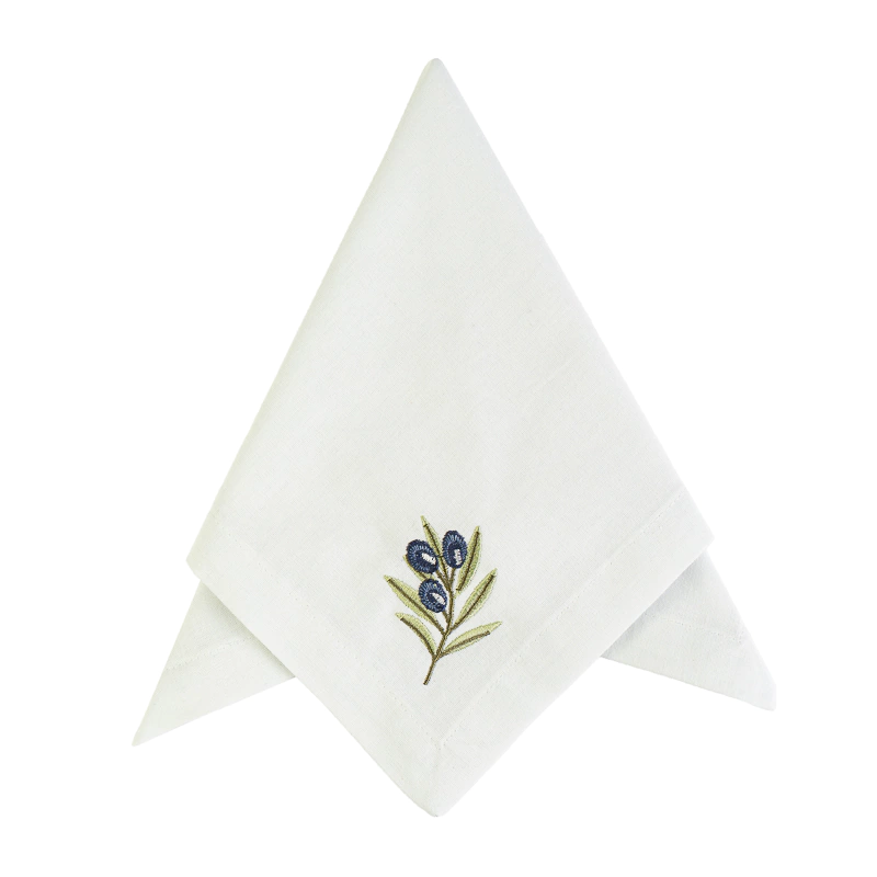 Guardanapo: Tecido linho com algodão, na cor branco com bordado localizado