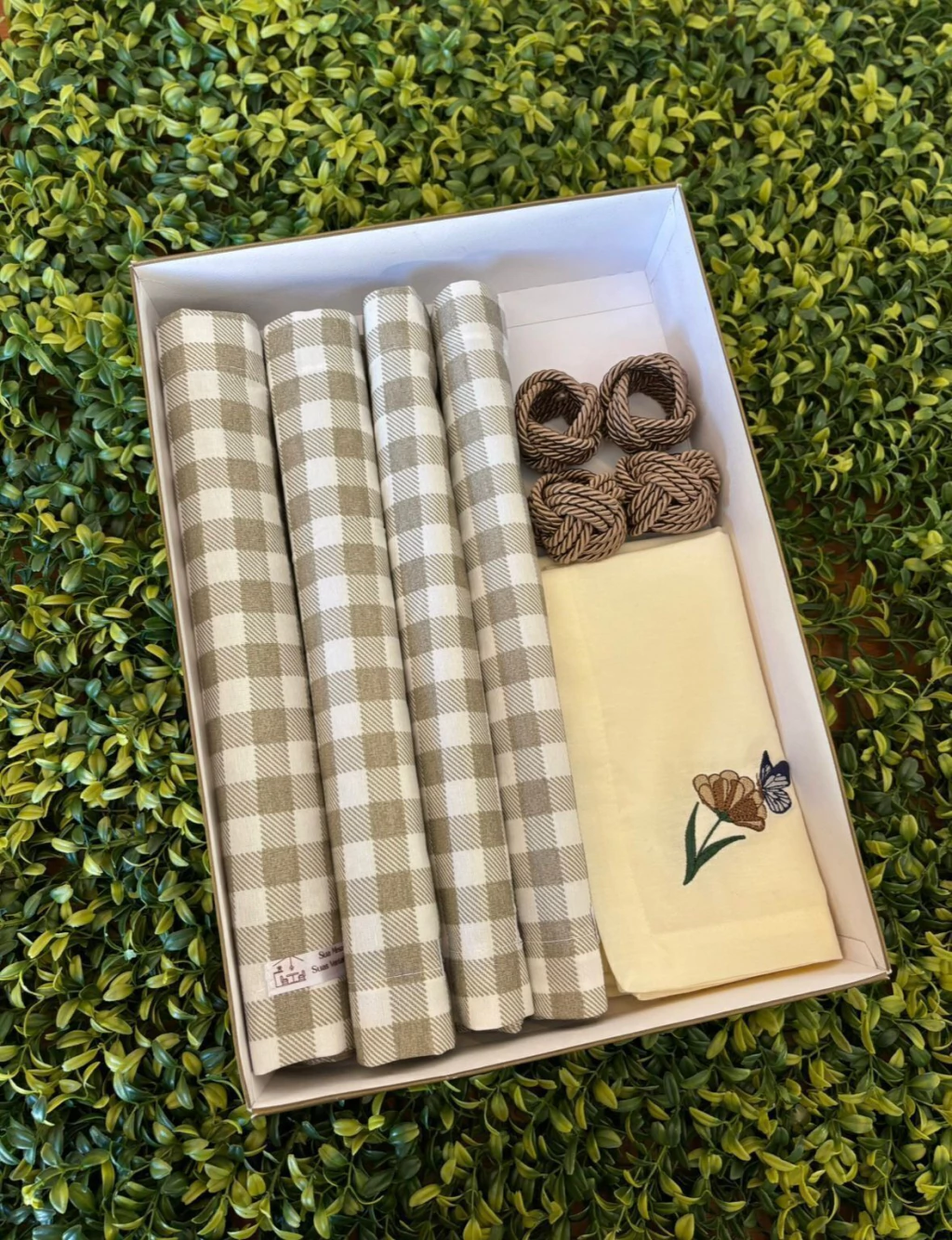 4 lugares americanos + 4 guardanapos + 4 porta guardanapos