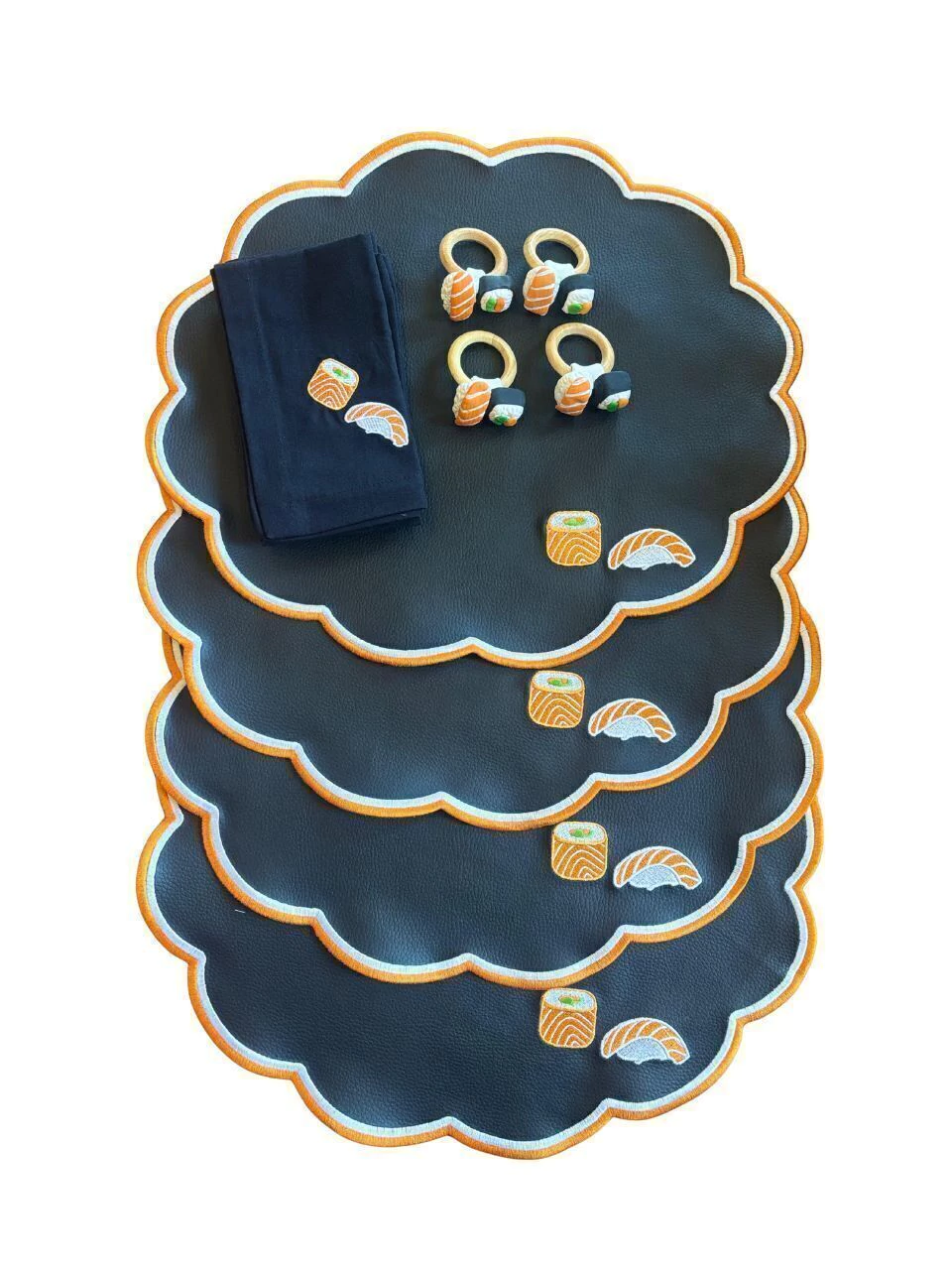 4 lugares americanos + 4 guardanapos + 4 porta guardanapos