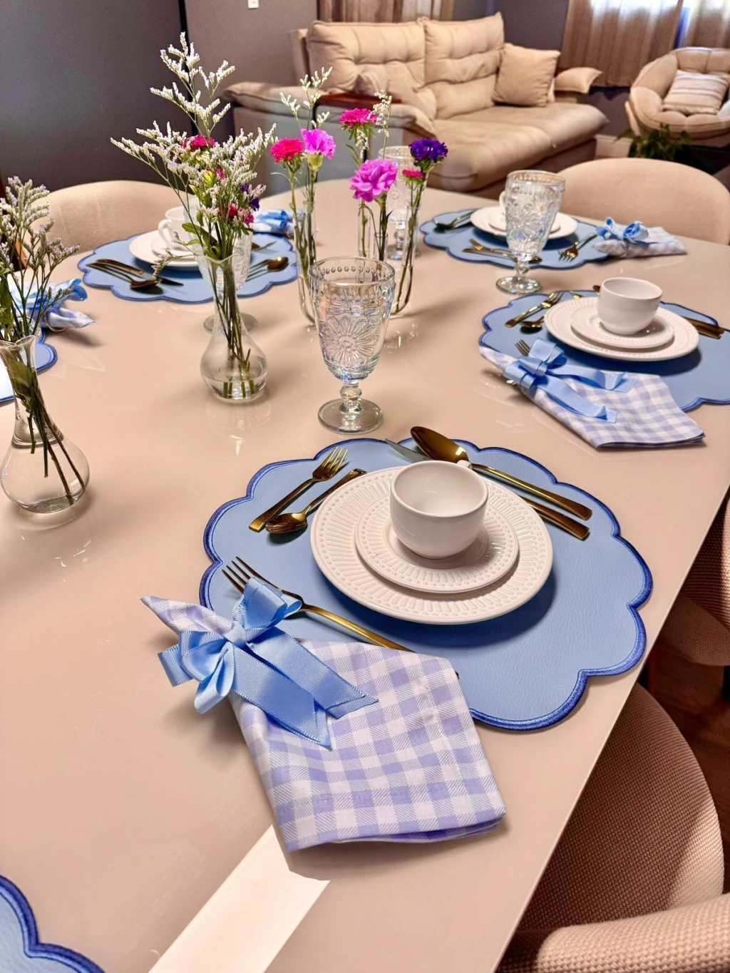 O Lugar Americano Round Azul Claro traz frescor e tranquilidade para sua mesa posta. Ideal para composições leves e harmoniosas, é a escolha perfeita para almoços em família, cafés da manhã e encontros especiais.