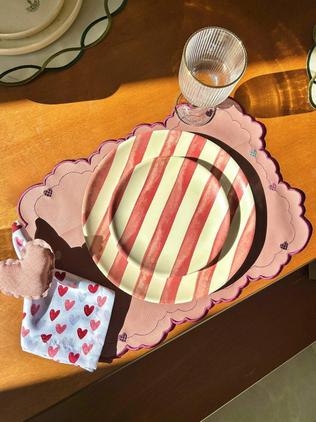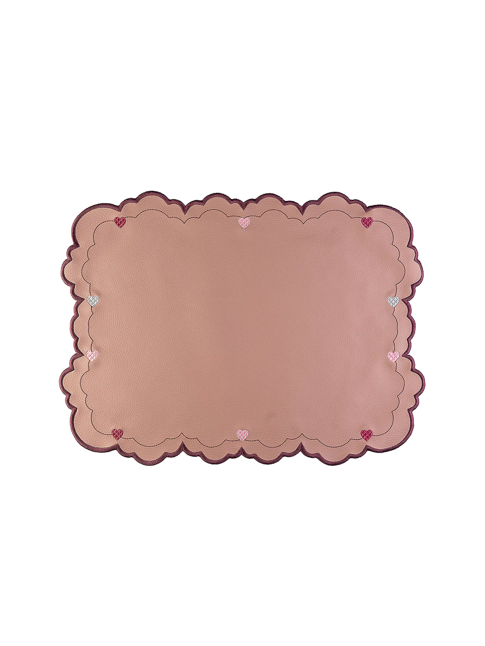 Lugar Americano Box Meu Bem querer- Courino Rose com bordado de coração.