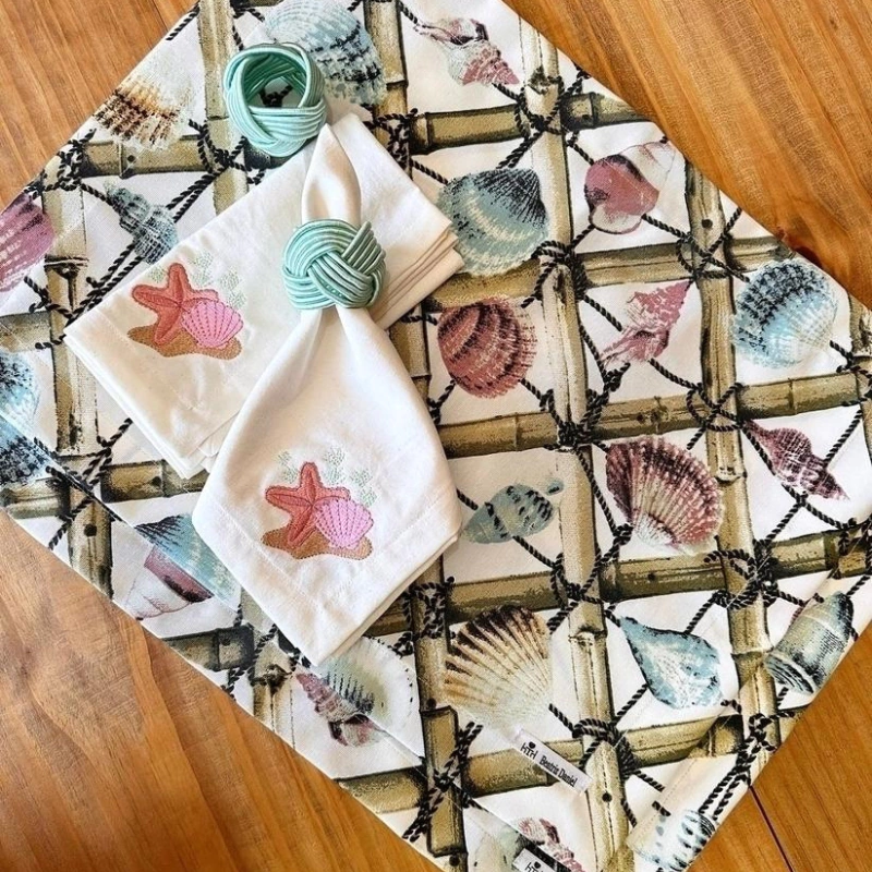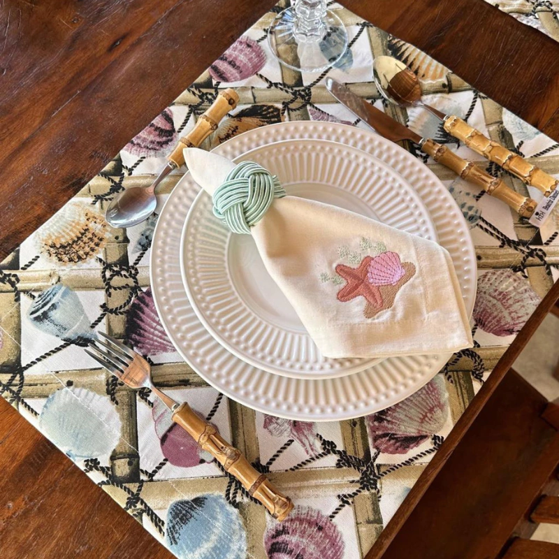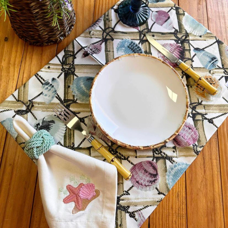 Lugar Americano em tecido jacquard impermeável, estampa fundo mar Rosê