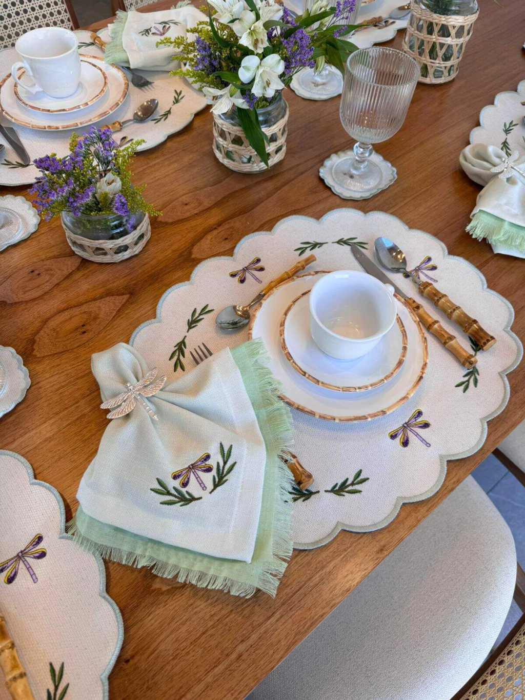 O Lugar Americano Linha Luxo Libélula une delicadeza e requinte para transformar qualquer refeição em um momento especial. Seu design inspirado na natureza, com a figura elegante da libélula, transmite leveza e sofisticação à mesa posta.