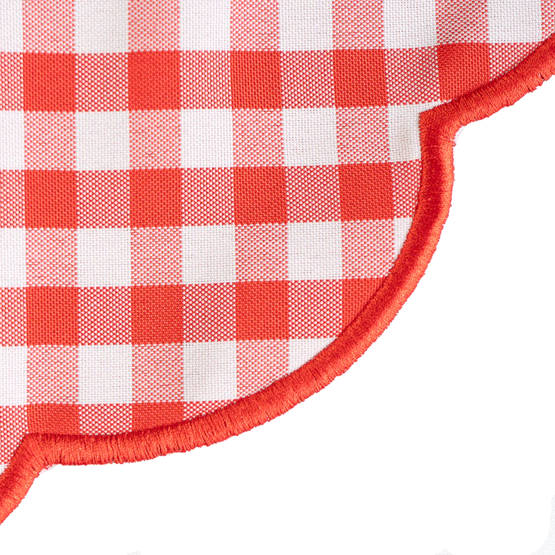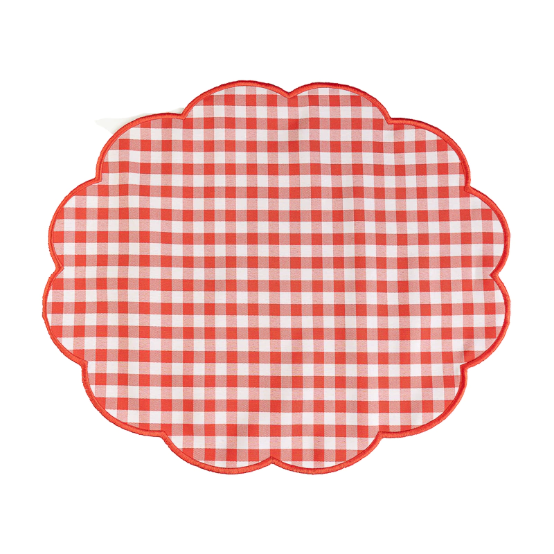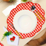 Lugar americano dupla face, sendo um lado quadriculado vermelho e branco e o outro vermelho liso
