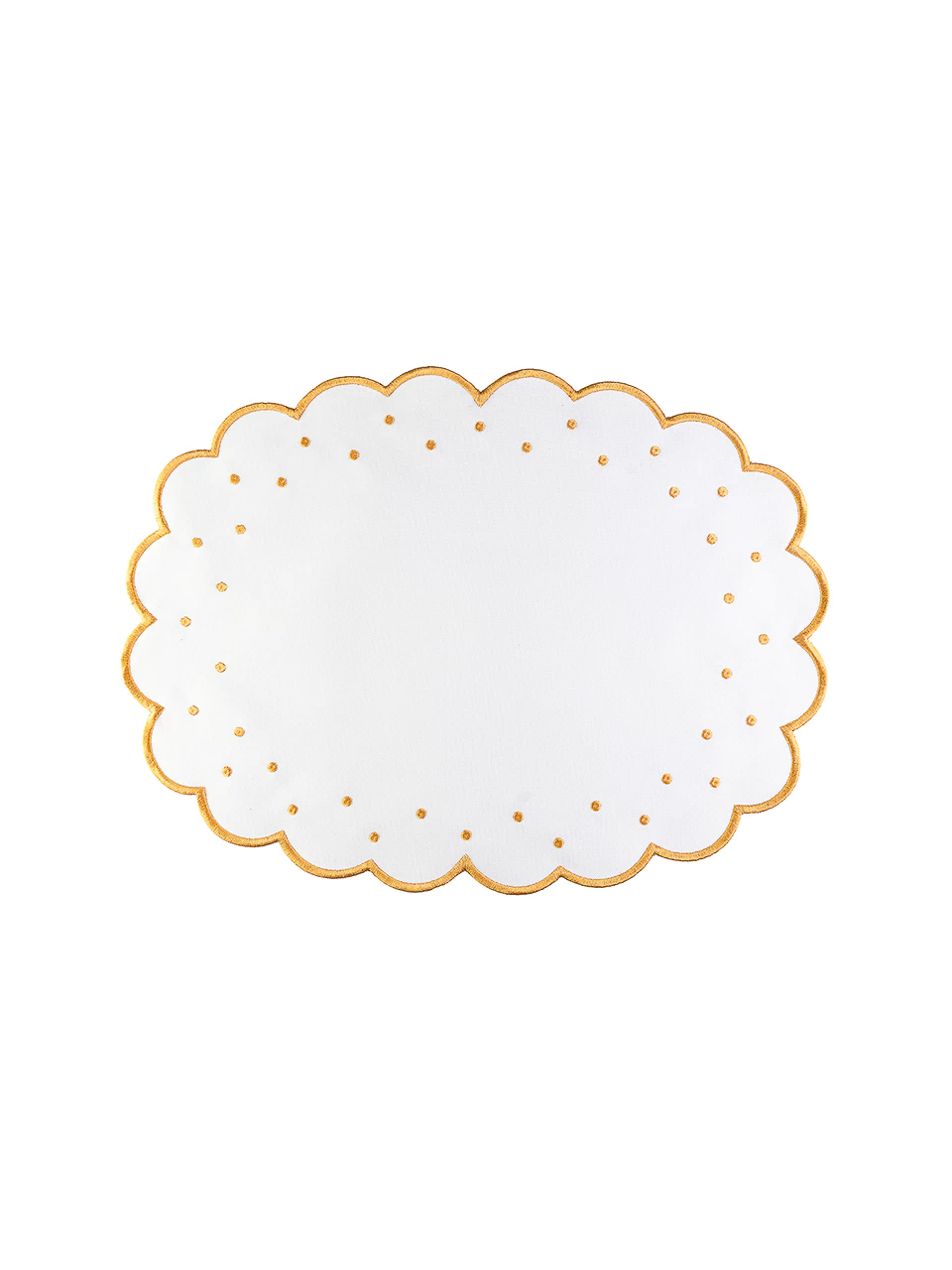 Decore sua mesa com estilo e praticidade usando o Lugar Americano Poá Mostarda Semi Impermeável. Seu tecido resistente e semi impermeável facilita a limpeza, enquanto a estampa de poás na cor mostarda adiciona um toque alegre e sofisticado às suas celebrações.