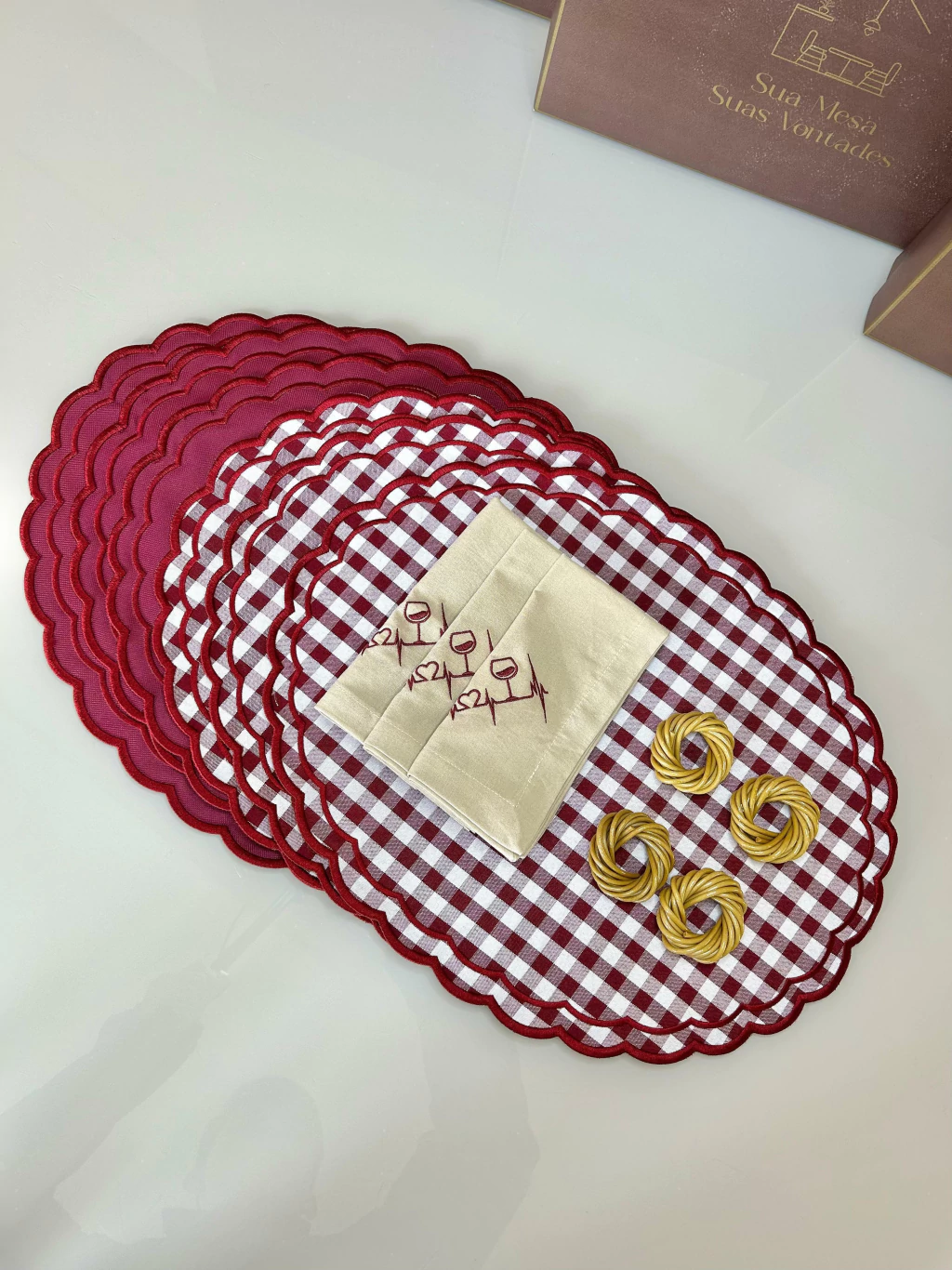 O Lugar Americano Xadrez Bordô Dupla Face une sofisticação e aconchego. Seu tom marcante transmite elegância e calor, perfeito para mesas especiais, jantares românticos e decorações clássicas.