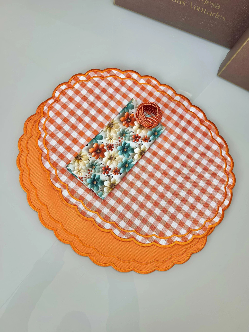 O Lugar Americano Xadrez Laranja Dupla Face é vibrante e acolhedor. Seu tom marcante adiciona calor e originalidade à mesa, perfeito para encontros alegres e composições modernas.
