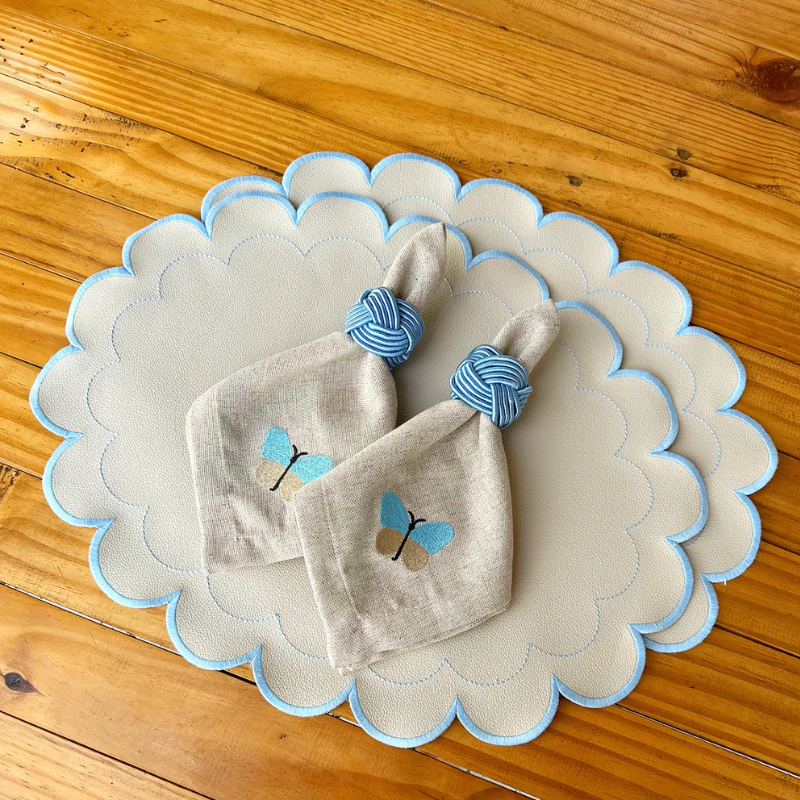 Complete sua mesa com nosso elegante Porta Guardanapo Nó Liso Azul Claro Borboleta