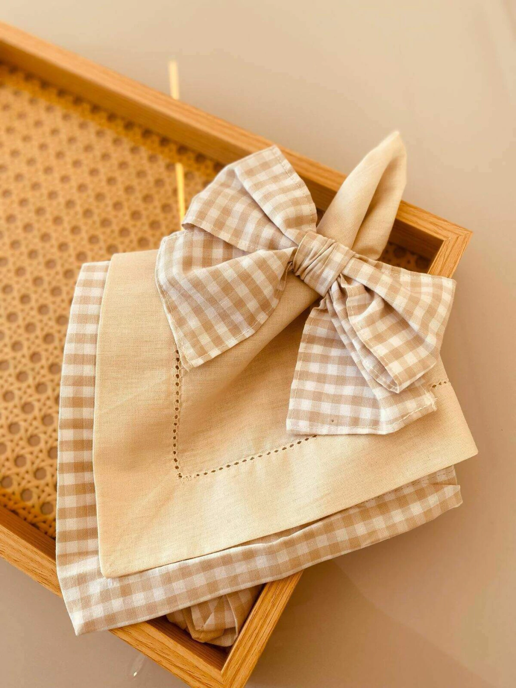 Com o Porta Guardanapo Quadriculado Laço - Bege, sua mesa ganha um toque de classe e encantamento, ideal para criar um ambiente acolhedor e elegante.