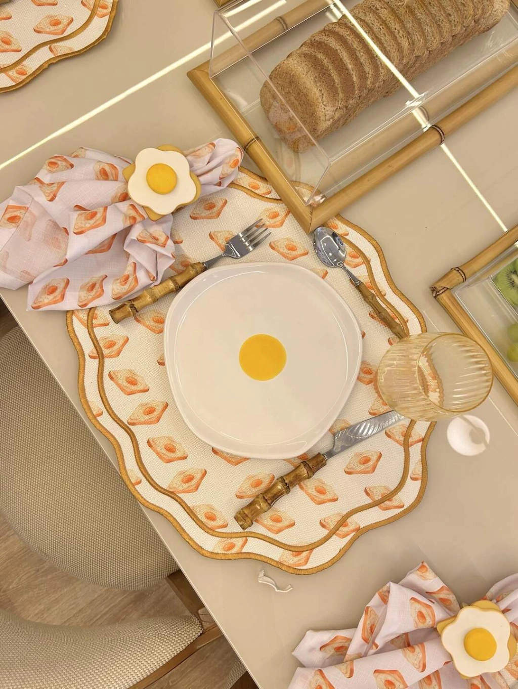 Prato de cerâmica em de formato de ovo, com borda branca e interior amarelo vibrante, com dimensão 3x24x 22cm.