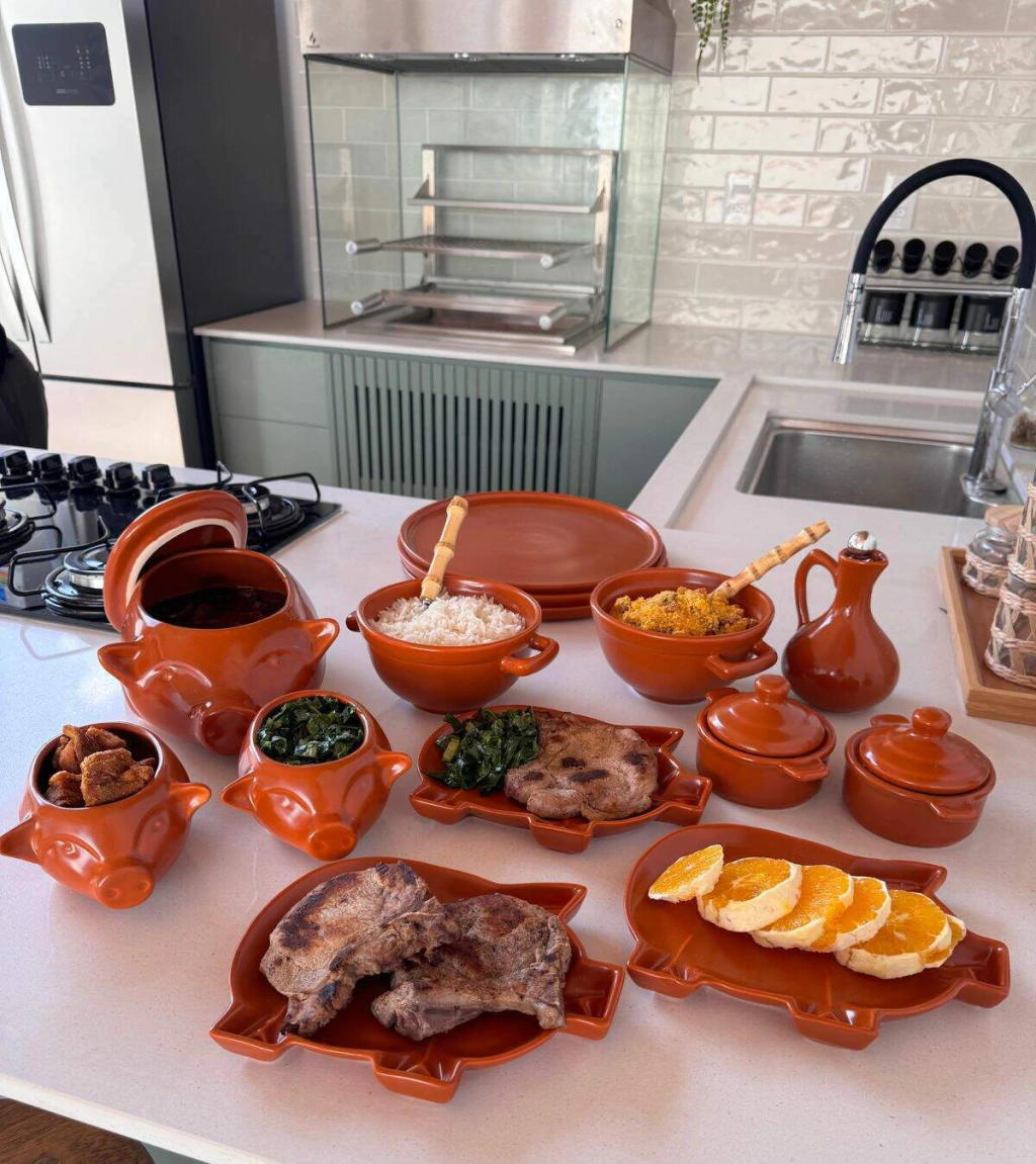 Cuidados: Lavar as peças utilizando esponja macia e sabão neutro. Não levar as peças ao forno. Não submeter as peças a chama direta.