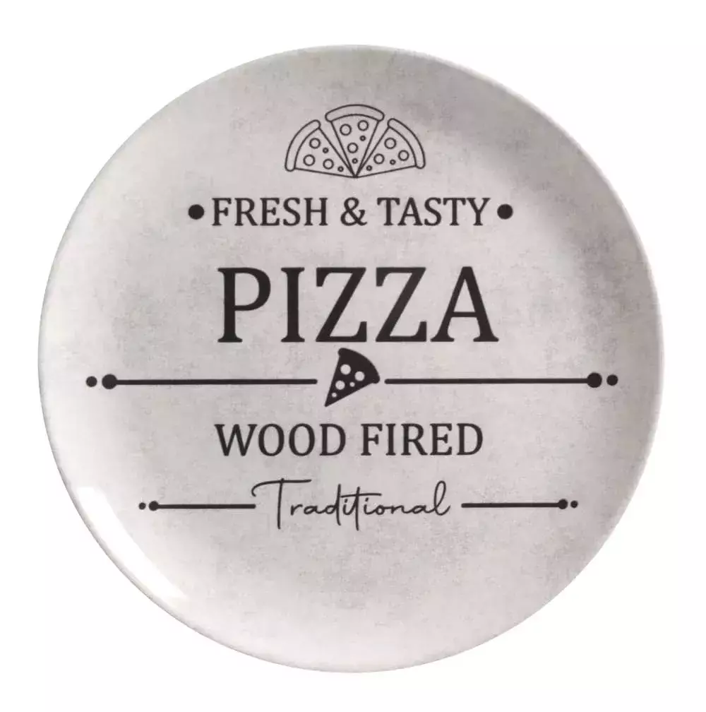 Prato raso em cerâmica de 29cm, desenvolvido especialmente para servir pizzas com muito charme e praticidade. Com design inspirado nas tradicionais pizzarias italianas, traz estampa criativa que valoriza o momento da refeição e deixa a mesa ainda mais descontraída.