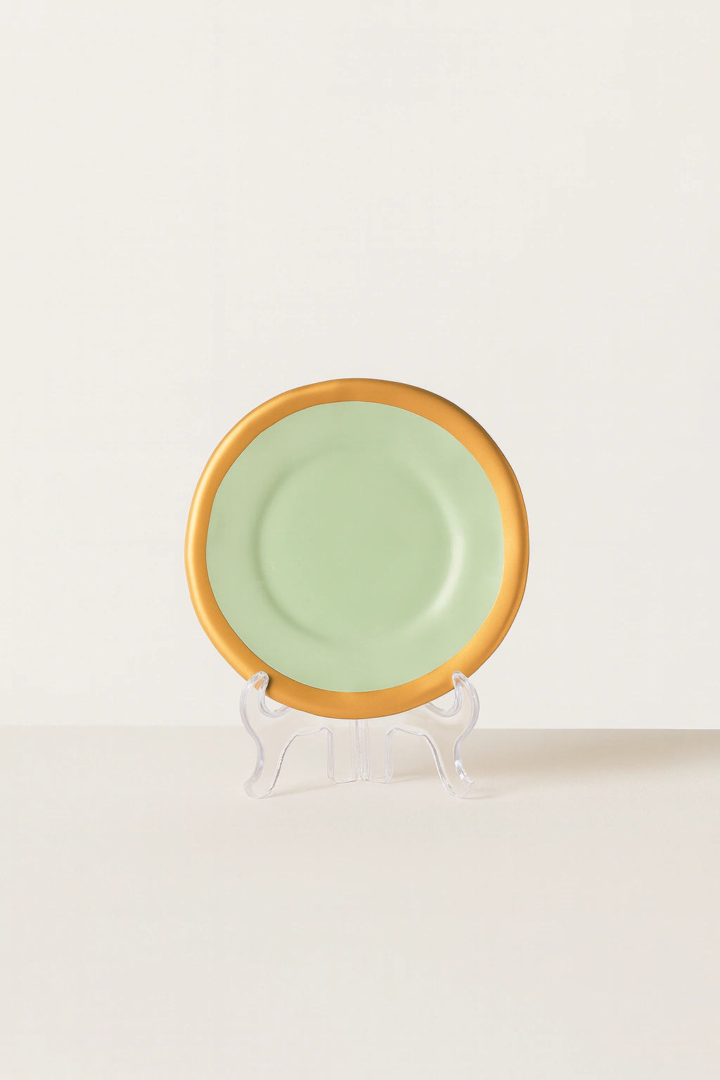 Prato de Sobremesa Orgânico com Filete Dourado – 22cm ✨