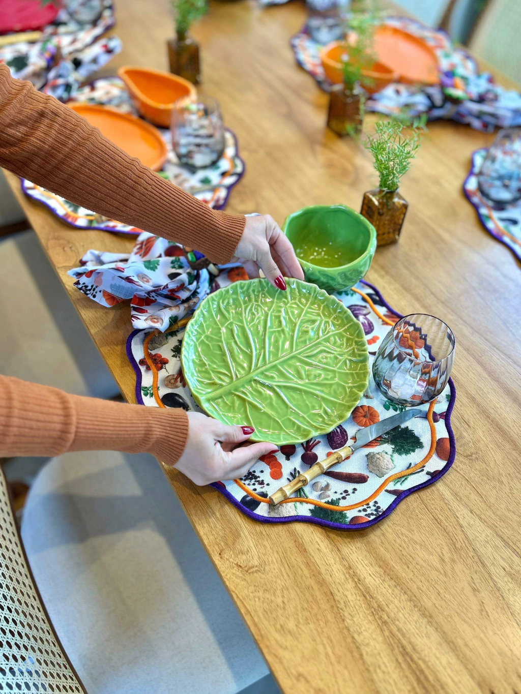 PRATO de cerâmica redondo em formato de REPOLHO VERDE