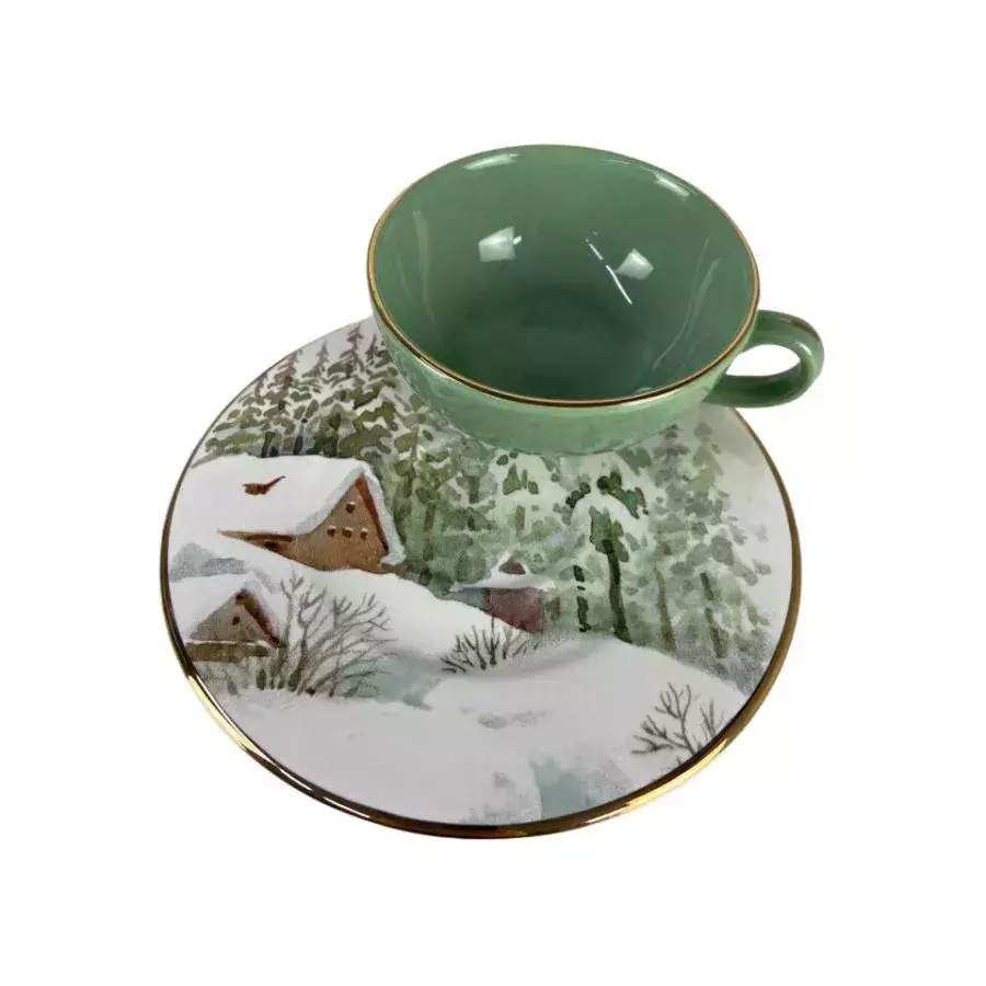 Conjunto de Xícara de Chá e Pires Verde Água Rena Premium Classic